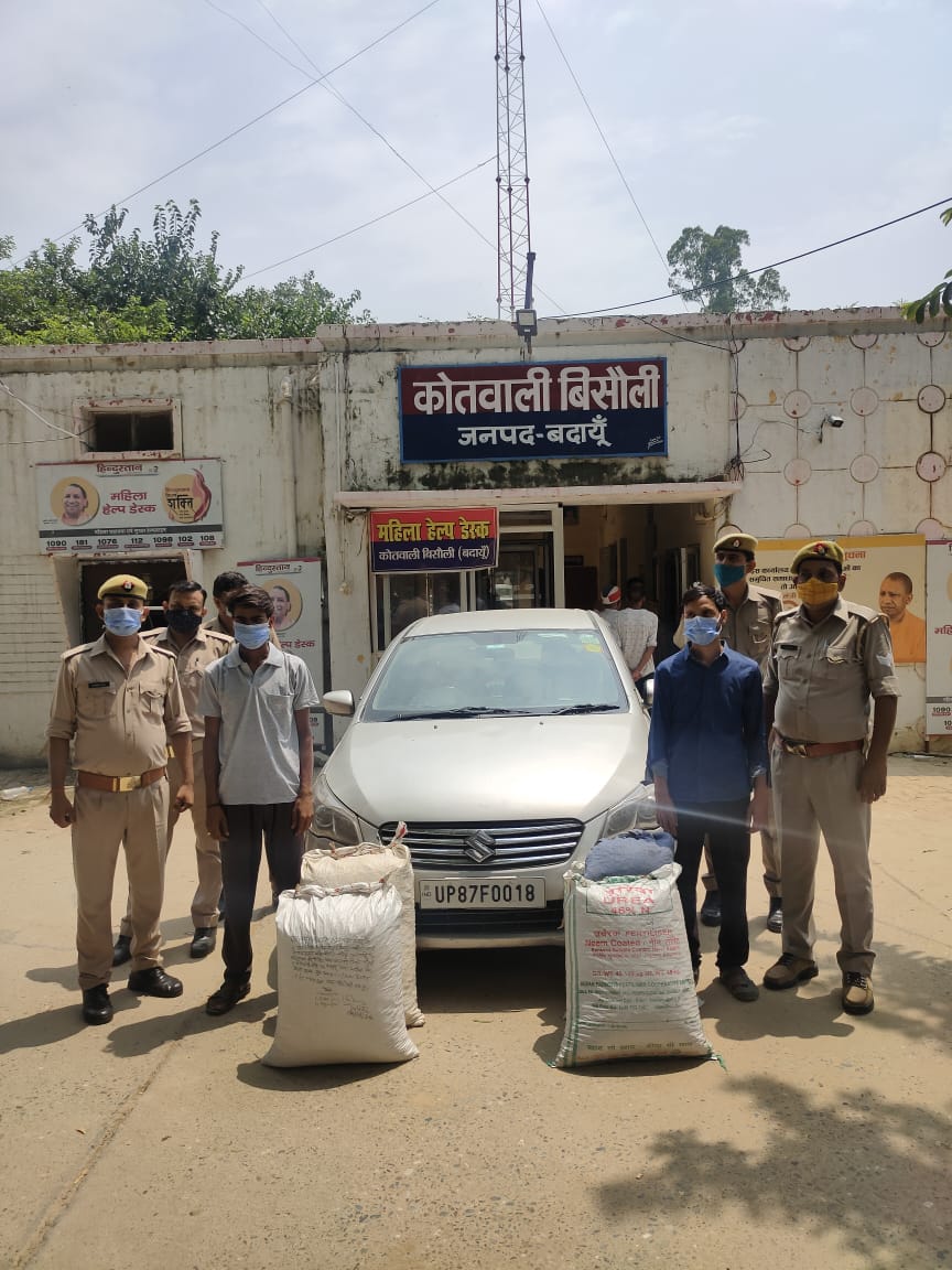 वरिष्ठ पुलिस अधीक्षक जनपद बदायूं संकल्प शर्मा के निर्देशन व अपर पुलिस अधीक्षक ग्रामीण जनपद बदायूं के पर्यवेक्षण एवं क्षेत्राधिकारी बिसौली के नेतृत्व में चलाये जा रहे अभियान अवैद्य शस्त्र रखने, स्वापक औषधि (स्मैक) आदि के विरुद्ध गिरफ्तारी अभियान के अन्तर्गत आज दिनांक 26.06.2021 को *थाना बिसौली पुलिस* द्वारा मुखबिर की सूचना पर आंवला बिसौली रोड पर जर्रारा मन्दिर हर्रायपुर जाने वाले रास्ते सें एक कार सिल्वर CIAZ-XDI रजि0 नं0 UP87F0018 में 02 अभि0गण 1. नाजिम पुत्र जाकिर नि0 एजाजनगर गौटिया थाना बारादरी जनपद बरेली 2. दिनेश पुत्र नन्हे नि0 ग्राम गंगापुर थाना भमोरा जनपद बरेली को 40 किलो 900 ग्राम अवैध अफीम डोडा चूर्ण समेत गिरफ्तार किया गया तथा कार का कोई वैध कागज न होने पर सीज की गई । उपरोक्त के सम्बन्ध मे थाना स्थानीय पर मु0अ0सं0 249/21 धारा 8/15 एन0डी0पी0एस0 एक्ट पंजीकृत कर मा0 न्यायालय के समक्ष पेश किया गया